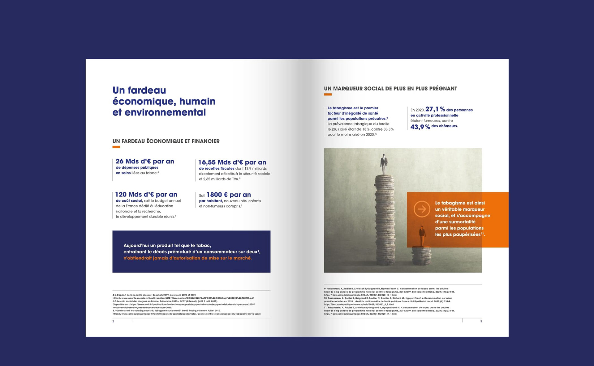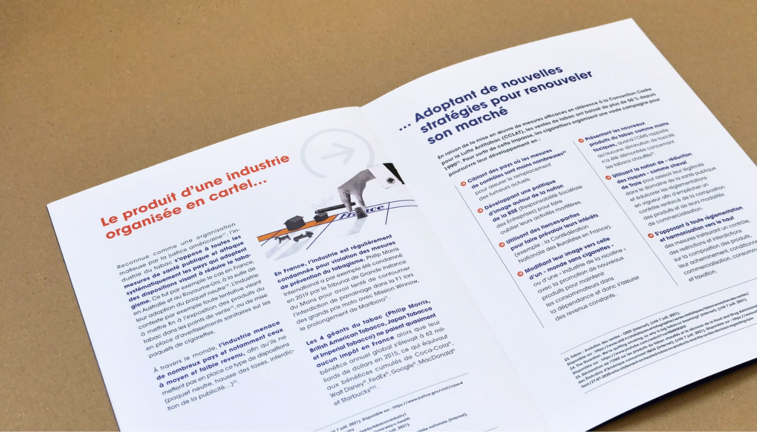 Création d’une brochure thématique sur “Le Tabagisme une pandémie industrielle” pour l’Alliance Française contre le Tabac.